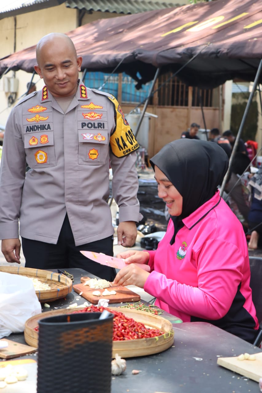 Kapolresta Pati Kombes Pol Andhika Bayu Adhittama beserta Ibu Ketua Bhayangkari turun langsung mengecek kesiapan di Dapur Umum dan turut serta dalam proses mengolah Dapur Umum Polresta Pati yang digelar selama 3 hari dimulai hari ini Sabtu (23/03/2024) dengan target sekitar 1000 paket makan siap saji.