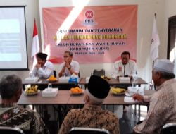 KUDUSJursidnusantara.com Dewan Pimpinan Daerah (DPD) Partai Keadilan Sejahtera (PKS) mulai memanggil sejumlah pendaftar Calon Bupati (Cabup) maupun Calon Wakil Bupati (Cawabup) Kudus 2024-2029 untuk menyerahkan berkas pendaftaran sekaligus menyampaikan Visi-Misinya untuk Kudus di depan para pengurus DPD PKS Kudus.