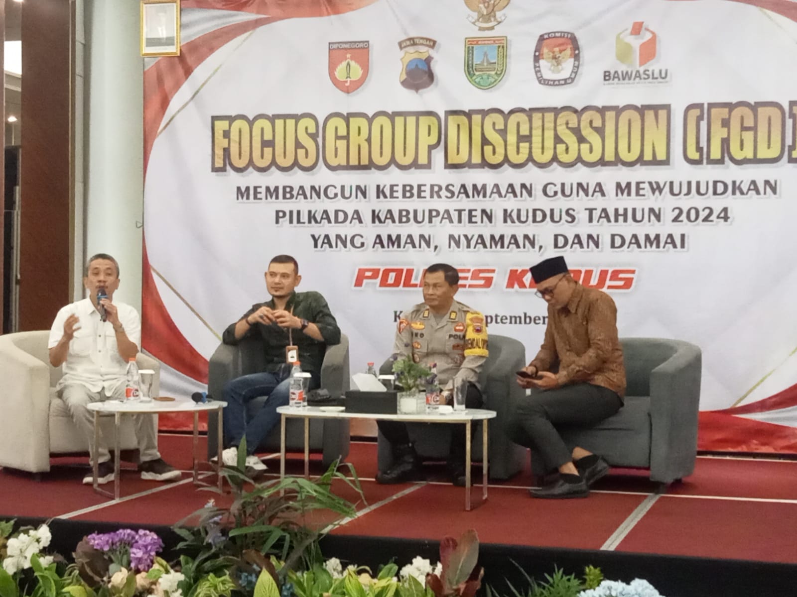 Dalam acara diskusi yang di moderatori Sururi Mujib mengatakan, bahwa kegiatan FGD yang diselenggarakan Polres Kudus ini menjadi penting untuk memperkuat sinergi antara Polisi dengan stakeholder guna untuk meningkatkan kesadaran akan pentingnya menjaga ketertiban dan keamanan masyarakat selama proses Pilkada berlangsung.