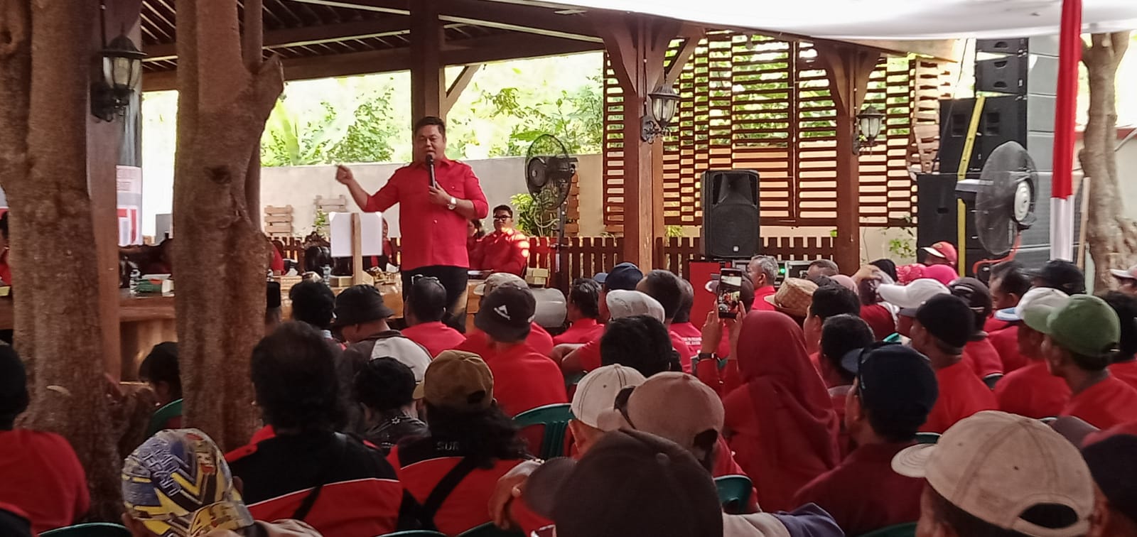 Pati jursidnusantara.com Konsolidasi pemenangan Paslon Bupati Pati Wahyu – Suharyono dan Paslon Gubernur Jateng Andika – Hendi di Dapil 5 Kabupatem Pati (Kecamatan Kayen, Sukolilo, Tambakromo dan Gabus) massa membludak bak lautan merah. Bertempat di pendopo Ketua DPC PDIP Kabupaten Pati Ali Badrudin Desa Kayen, Kecamatan Kayen, Kabupaten Pati pasukan merah siap menangkan pasangan yang diusung partai. Selasa, 8/10/2024.