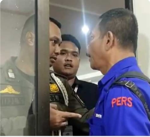 Sontak adu mulut pun terjadi antara Satpol PP dan staf KPU yang berjaga di pintu masuk lantai Dua kantor DPRD Pati.