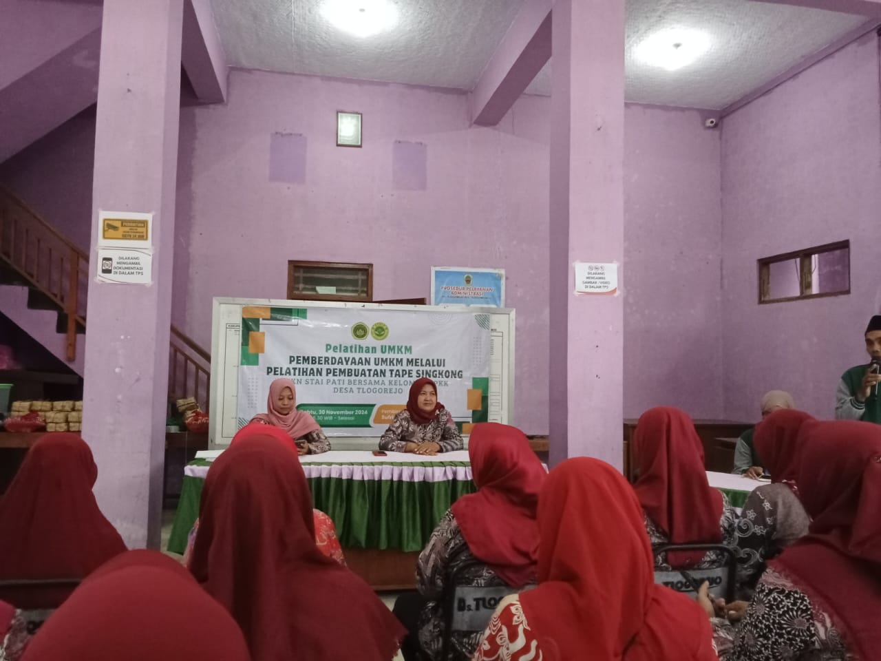 Pati, jursidnusantara.com Sabtu 30 November 2024, dalam memenuhi syarat/ PROGJA KKN, Mahasiswa STAI PATI kelompok 4 mengadakan Pelatihan terkait UMKM di desa Tlogorejo kecamatan Tlogowungu. Pada sore ini Mahasiswa KKN STAI PATI mengambil tema Pembuatan Tape Singkong . Karena diingat mudahnya bahan sebagai masyarakat yang kebanyakan petani ini , supaya bisa mengolah hasil tani dengan sebaik- baiknya dan terlebih bisa menjadikan kegiatan yang menghasilkan uang untuk masyarakat setempat .