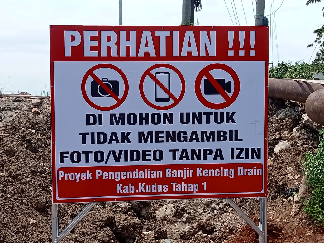 Sumardi Wakil ketua Sekretariat Bersama Insan Pers Jawa Tengah (Sekber IPJT ) Kudus , mempertanyakan Tulisan larangan mengambil gambar dan video tanpa izin, di lokasi proyek pembangunan kolam retensi yang berada di dukuh Gendok Kecamatan Jati Kabupaten Kudus. Diketahui anggaran proyek tersebut menelan lebih dari 350 Milyar.