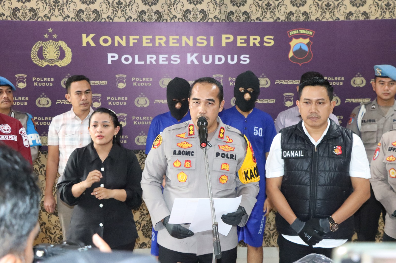 “Kami mengamankan dua orang pelaku,” kata AKBP Ronni Bonic kepada wartawan saat Konferensi Pers di Mapolres Kudus, Jumat, 6 Desember 2024.