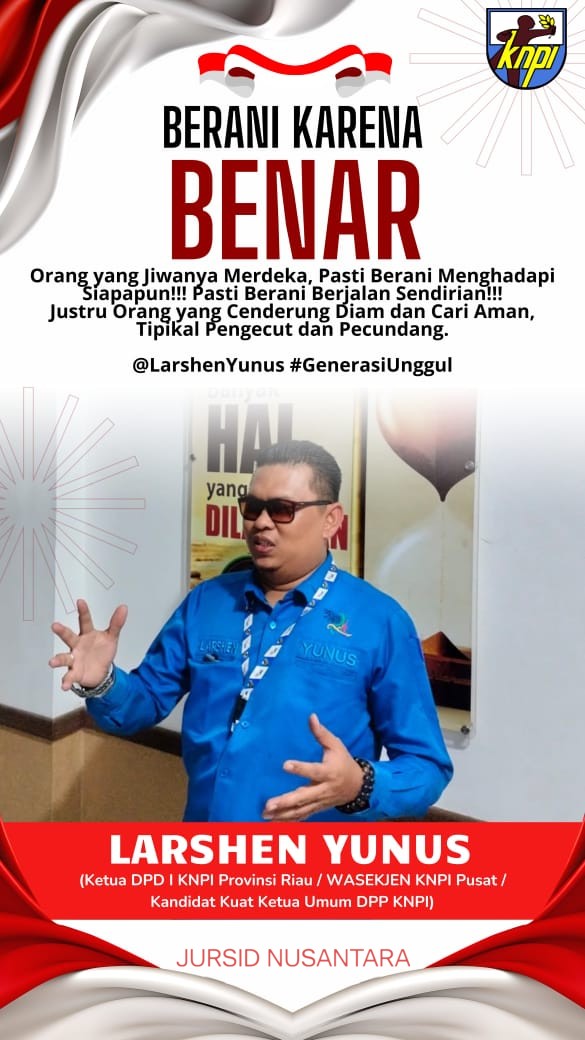 “Mohon izin Bang Wahid! Gubernur termuda kelima se-Indonesia. Ada banyak harapan Rakyat Riau di pundak Abang. Ingatlah dengan Janji-Janji Kampanyemu itu Abangku. Jangan muda Berbusung Dada. Pengalaman Kepala Daerah yang jatuh ditengah jalan sudah banyak. Justru orang-orang yang bang Gubernur anggap dekat kebanyakan berakhir sebagai Racun yang merusak sistem. Hindarilah itu bang Gubri. Janjimu setumpuk goni, Jadi pejabat jangan tipis telinga. Kami sangat tidak ikhlas, Triliyunan APBD Riau lagi-lagi habis percuma dengan hal-hal yang sia-sia. Ayo Revolusi Mental” ujar Ketua KNPI Riau, Larshen Yunus, seraya mengakhiri pernyataan persnya. (*)