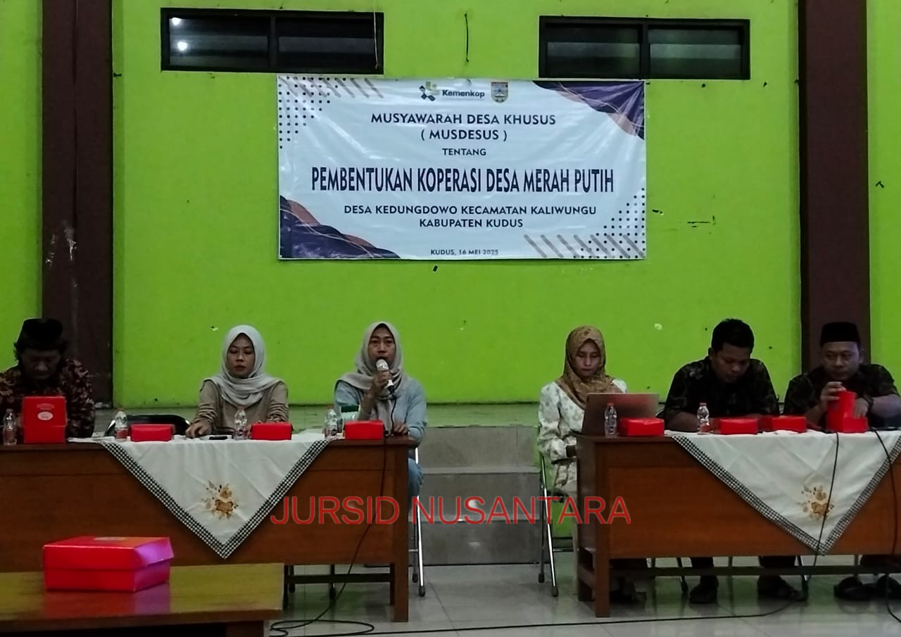 KUDUS – jursidnusantara.com Pembentukan Koperasi Desa (Kopdes) Merah Putih di seluruh desa dan kelurahan di Kabupaten Kudus dalam bulan Mei 2025 ditargetkan selesai. Program nasional ini ditargetkan dapat diluncurkan pada 12 Juli 2025, bertepatan dengan peringatan Hari Koperasi, dan mencakup 132 desa dan kelurahan di Kudus.