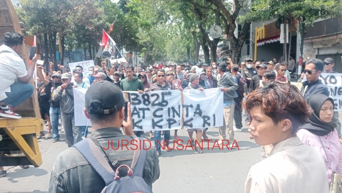 Pati, jursidnusantara.com Ribuan massa bergerak dengan berjalan kaki dari alun-alun Kabupaten Pati menuju Kantor Pos untuk mengantarkan surat kepada KPK (Komisi Pemberantasan Korupsi) di Jakarta. Dikawal oleh kepolisian dan TNI masyarakat yang tergabung dalam Aliansi Masyarakat Pati Bersatu (AMPB) terus berorasi guna melengserkan Bupati Sudewo. Surat yang ditujukan kepada KPK dari masyarakat Pati untuk mengusut Tuntas tentang dugaan korupsi yang dilakukan oleh Sudewo sewaktu duduk di DPR RI. (25/08)