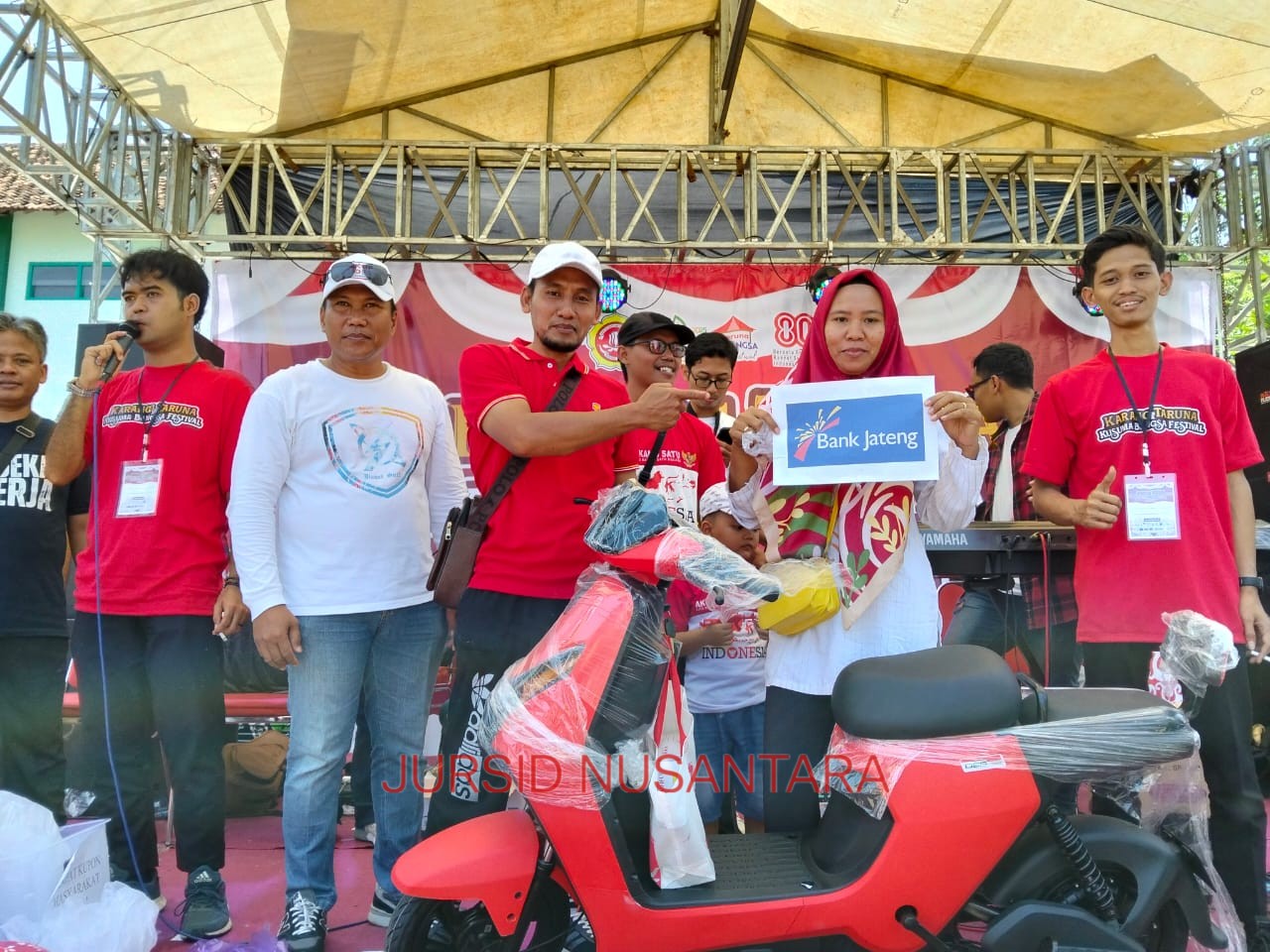 Sementara itu, Jumiati Dukuh Karangmalang RT 03 RW 06 yang mendapat hadiah utama sepeda listrik mengatakan, saya senang sekali dapat hadiah utama.