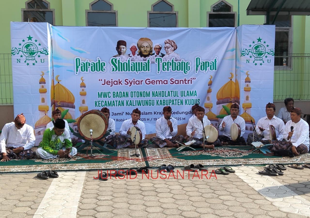 KUDUS – jursidnusantara.com Peringatan Hari Santri Nasional (HSN) tahun 2025 yang digelar oleh Majlis Wakil Cabang Nahdlatul Ulama (MWC NU) dan Badan Otonom (Banom) Kaliwungu Kudus berlangsung meriah.