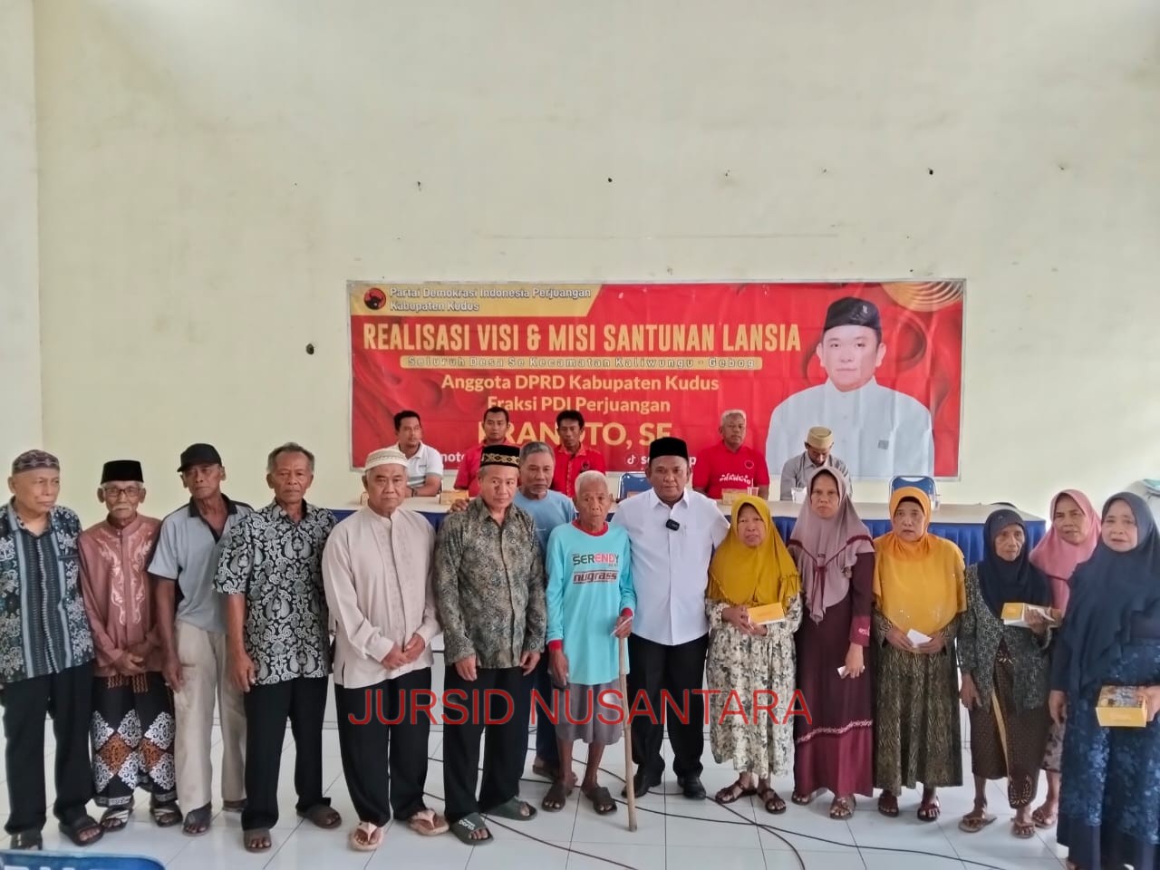 Pranoto, SE., anggota DPRD Kudus mengatakan, bahwa kegiatan sosial pagi hari ini adalah santunan para Lansia. Kegiatan ini dalam rangka memenuhi janji kampanye ketika mencalonkan diri DPRD Kudus tahun 2024 lalu.