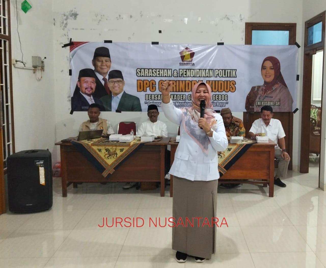 KUDUS – jursidnusantara.com Dewan Pimpinan Cabang (DPC) Partai Gerindra Kabupaten Kudus terus memperkuat barusan kader. Melalui kegiatan sarasehan dan pendidikan politik bertajuk “Penguatan Ideologi untuk Peningkatan Kualitas Kader Partai”.