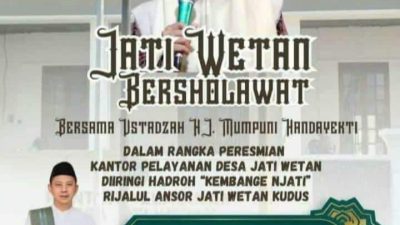 KUDUS – jursidnusantara com Dalama rangka tasyakuran peresmian kantor pelayanan Desa Jati Wetan, Kecamatan Jati, Kabupaten Kudus menghadirkan Ustadzah Hj. Mumpuni Handayekti. Ustadzah yang lagi viral karena bahasa ngapaknya, beliau…