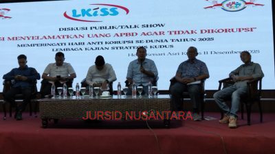 KUDUS – jursidnusantara.com Diskusi publik yang digelar oleh Lembaga Kajian Kudus Strategis (LKiSS) dalam rangka memperingati Hari Anti Korupsi Dunia 2025 di Hotel Kenari Asri Gg 2 Kudus, pada Kamis…